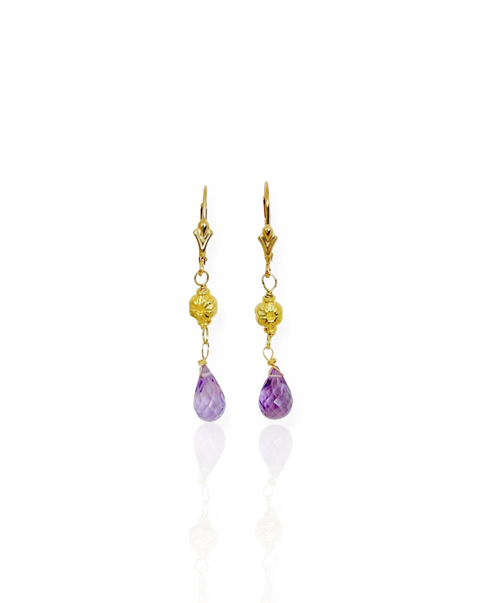 14k Gold Amethyst Briolette Earrings